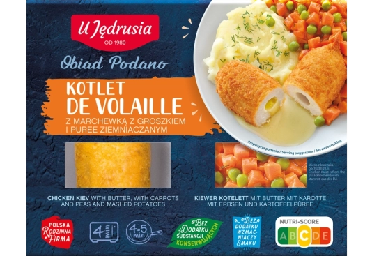 Kotlet de volaille z marchewką z groszkiem i puree ziemniaczanym